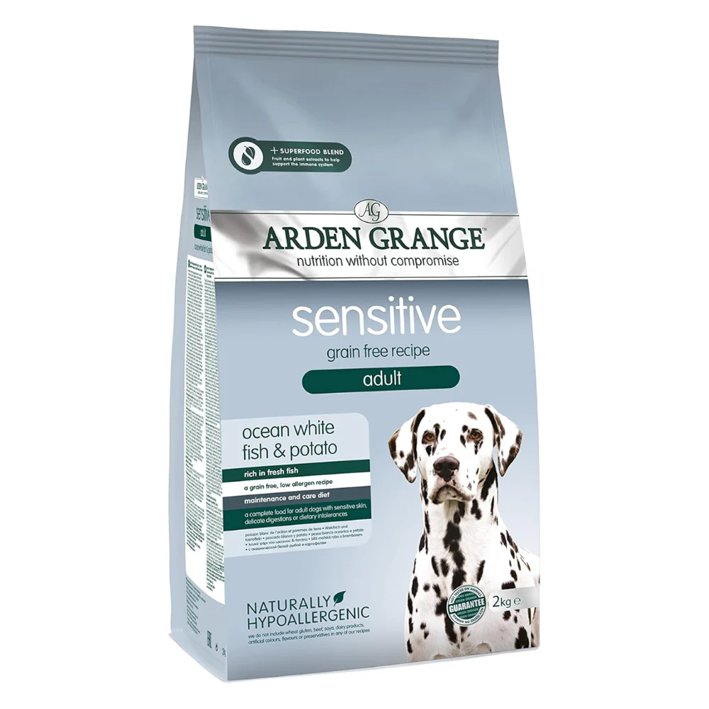Arden Grange Sensitive Adult Ocean White Fish & Potato is a nutritionally complete dry food, ideally suited for dogs with delicate digestion and/or sensitive skin.